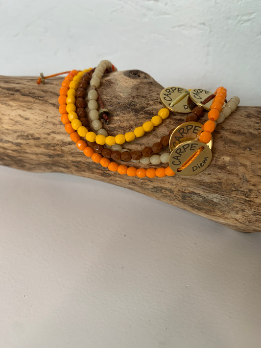 "Tes bijoux sont uniques, pensés et créés pour nous ! Pour moi c est une fierté de les porter , de les sentir à mes poignets . C’est aussi sentir vibrer chaque petite pierre et me dire oui c’est vraiment moi ! Et puis , il y a cette petite pierre orange …elle n est pas là par hasard : elle nous insuffle la joie , l’énergie ! Merciiii pour ces belles réalisations dont je ne me lasse pas."